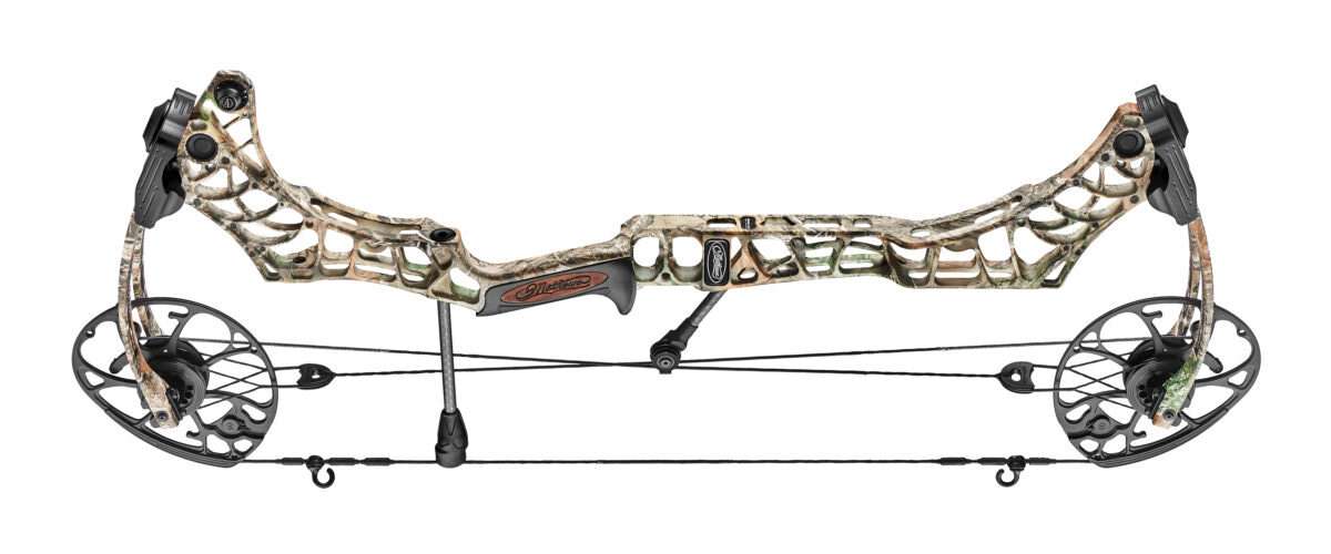 The Mathews V3X 29 hits up to 340 fps (IBO). It’s a smooth, quiet, accurate compound. This model is 29 inches axle to axle, has a 6-inch brace height, and weighs 4.47 pounds. It has a draw length of 25.5–30 inches. It has draw weight options of 60, 65, 70 and 75 pounds. Interestingly, this bow allows hunters to mount a dovetail sight through the bow’s riser, which eliminates the need for an external bracket. This helps decrease its footprint and increases stability. Furthermore, the new Stay Afield System (S.A.S.) allows hunters to safely remove or repair strings and cables in the field without using a bow press. All that’s needed is a small, lightweight emergency kit.